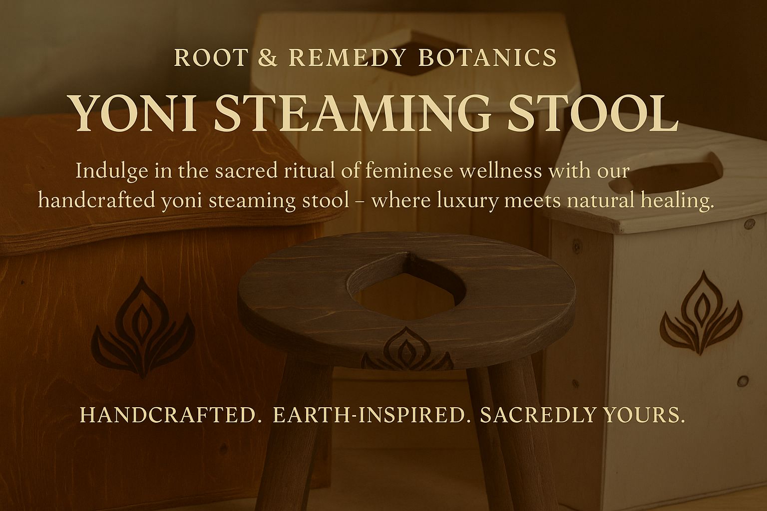 Experience the ancient art of self-care and feminine healing with our handcrafted Yoni Steaming Stools by Root & Remedy Botanics. Designed with intention, comfort, and natural beauty in mind, each stool is made from high-quality, sustainably sourced wood and finished with a fire-burned Root & Remedy Botanics emblem, symbolizing purity and balance.